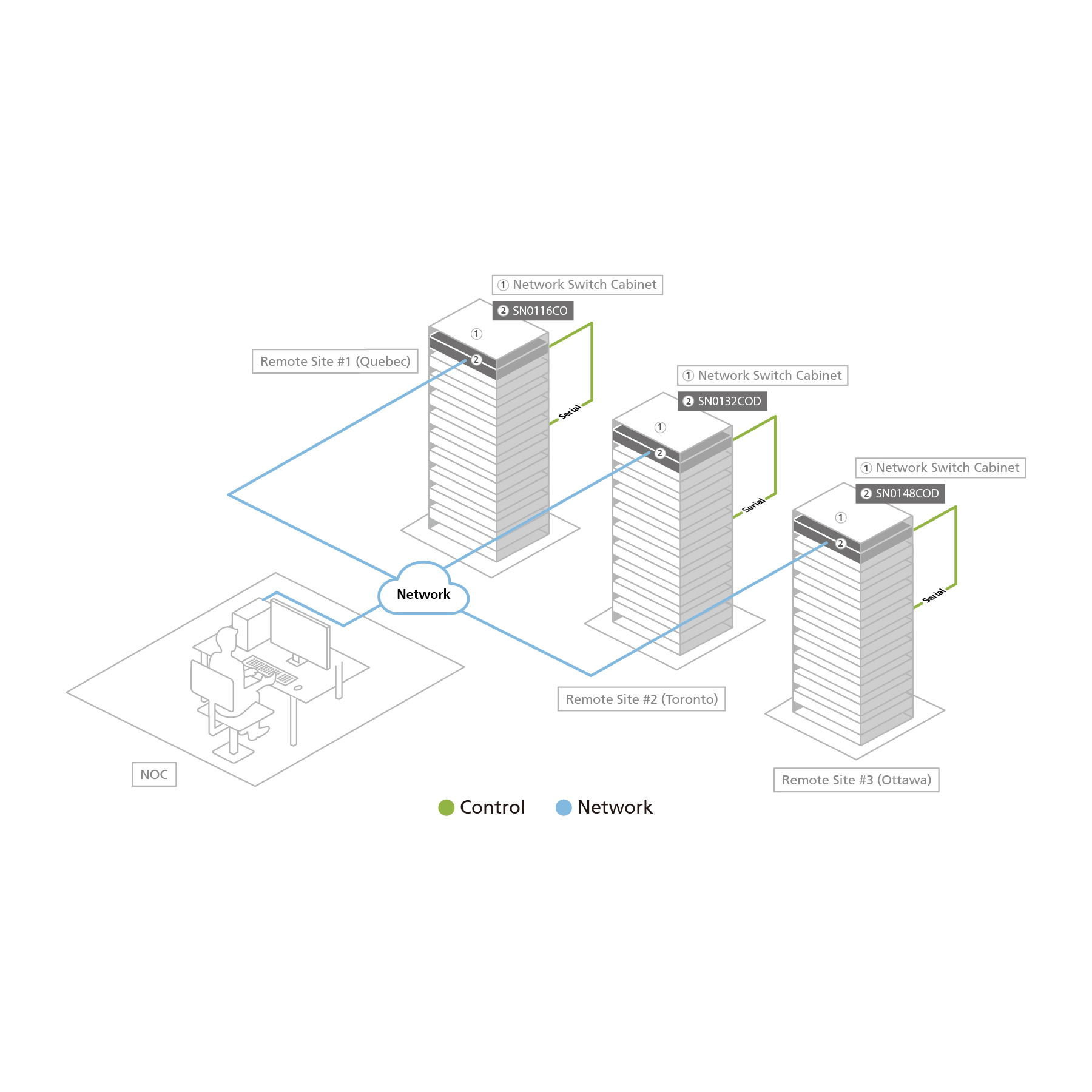 • The technicians need remote access to any serial console port on the network switches and servers, without the need to for on-site troubleshooting.