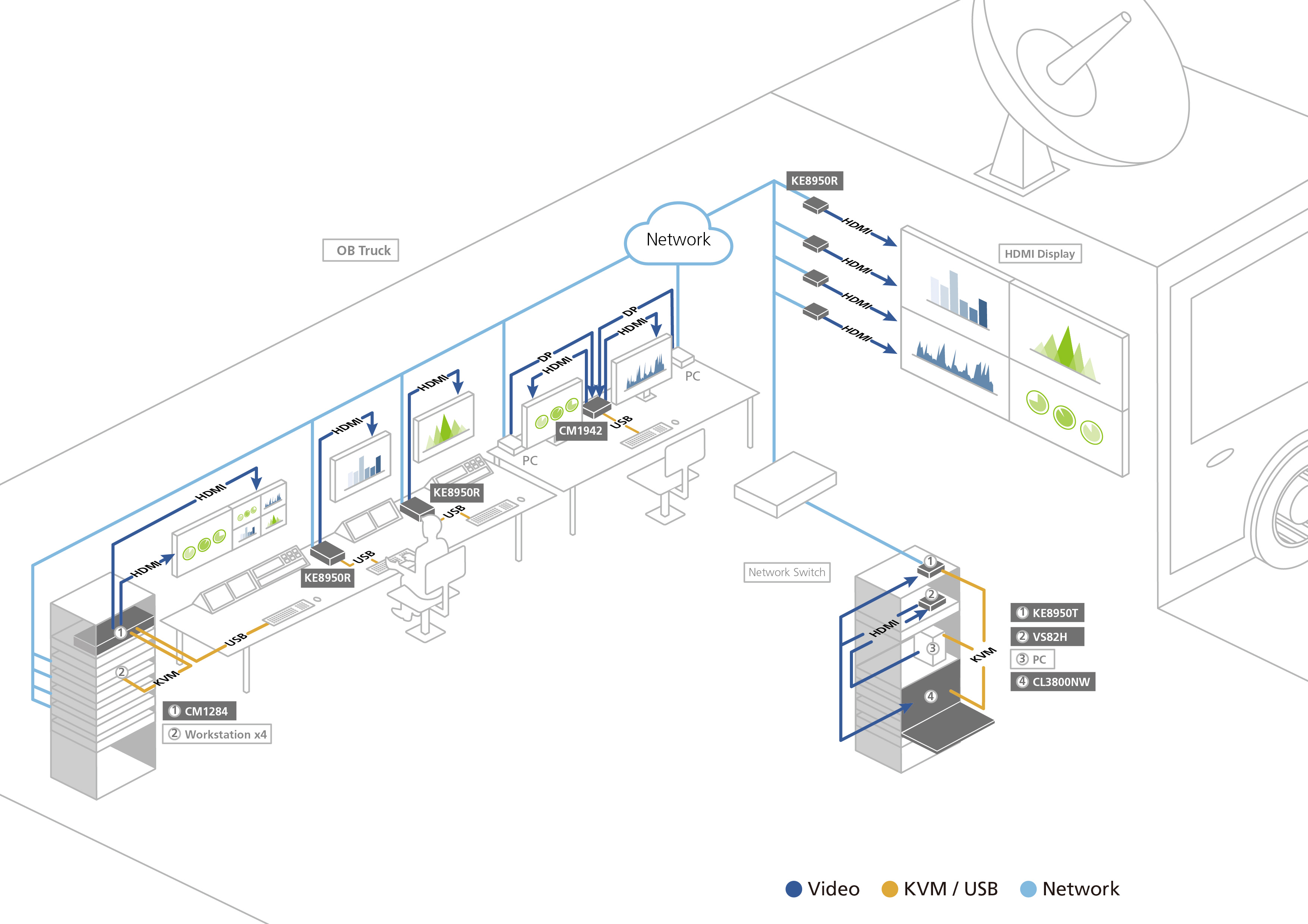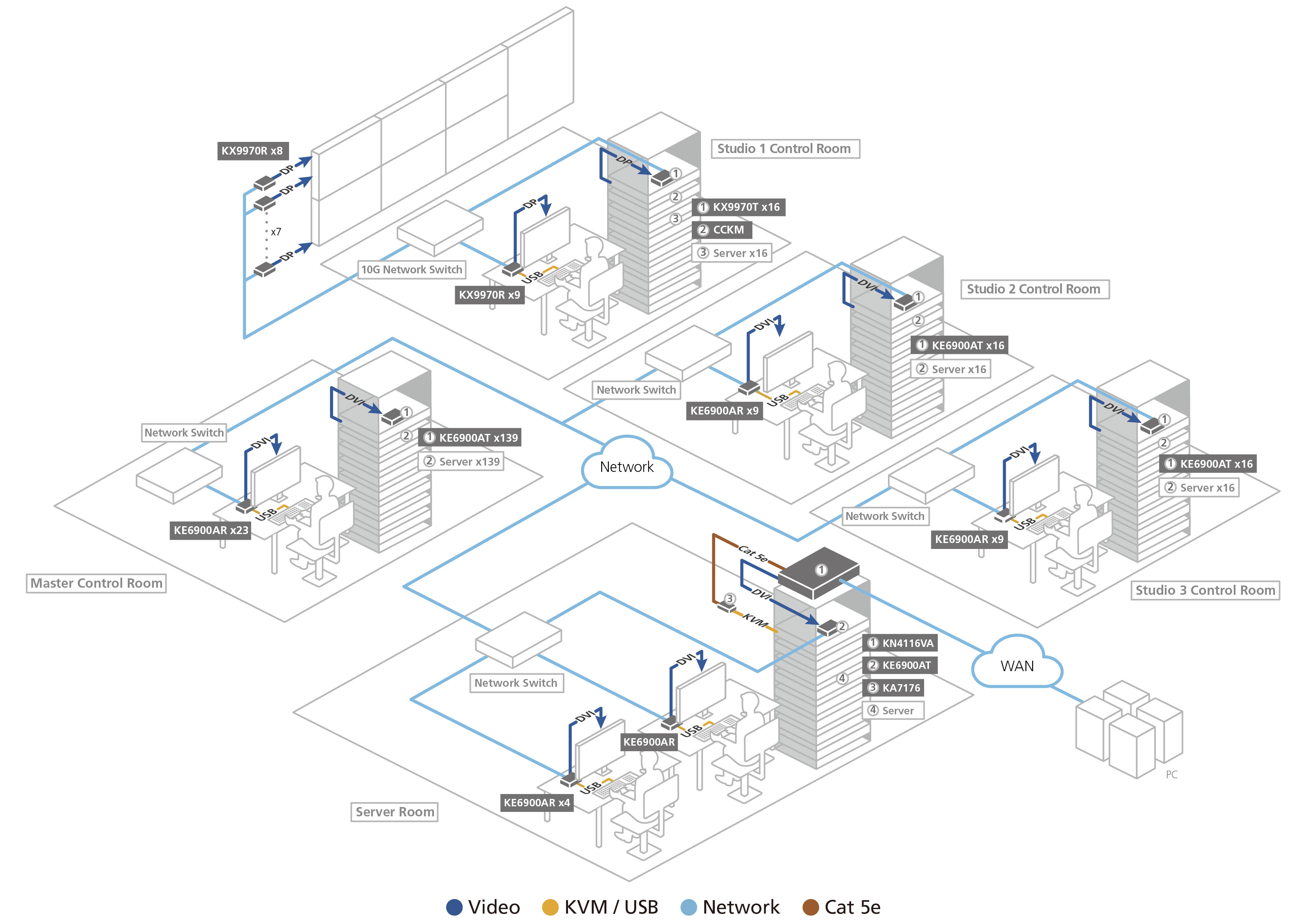Broadcasters, content creators, and media operators need access to digital content through reliable and secure multimedia data channels. They require speed and stability for intensive content production. This is where ATEN steps in with our specialization in AV/IT solutions. ATEN offers broadcasters the ability to centrally manage multiple video sources, allowing them to effortlessly switch and control all video devices on multiple dedicated monitors and customizable video walls. By providing the AV control for consistent and efficient production and post-production processes, ATEN is an invaluable partner for broadcasters, empowering them to create a wide range of captivating content.