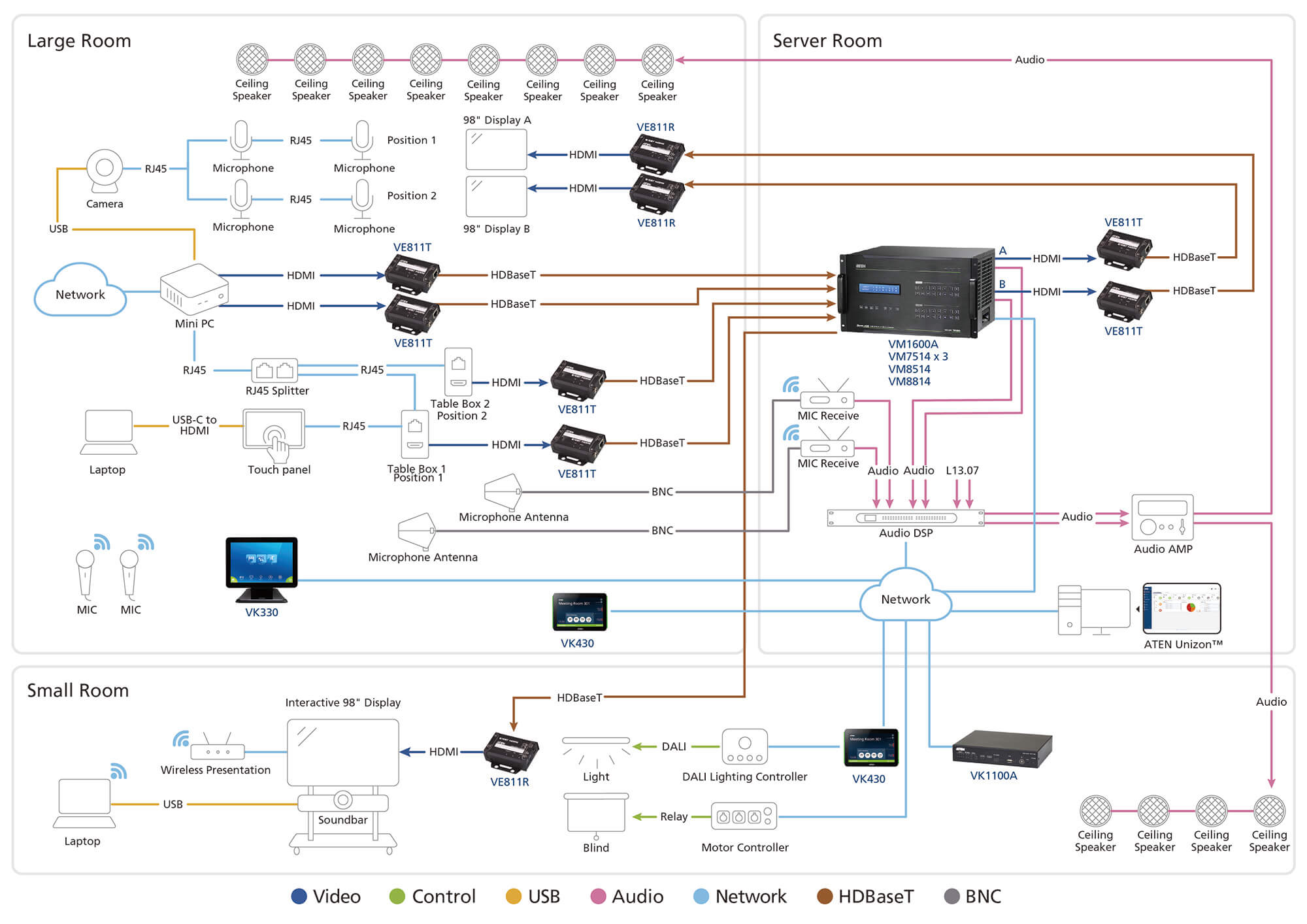 ATEN provides a total meeting room solution, with AV signal control, meeting management, and room booking system.