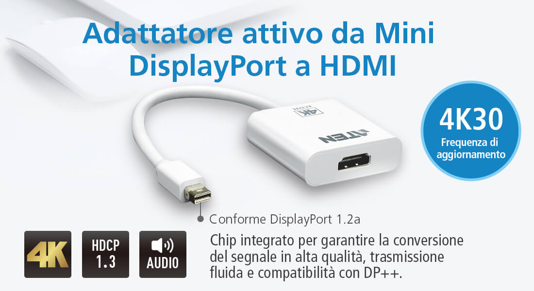 - Converte i segnali Mini DisplayPort in uscita HDMI