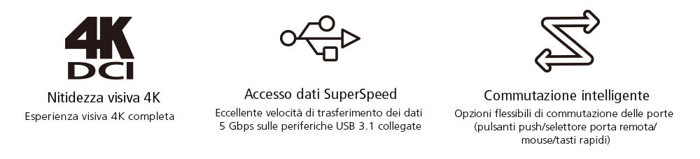 La commutazione delle porte è flessibile ed è possibile scegliere di usare i pulsanti, il mouse, i tasti di scelta rapida e il selettore remoto delle porte, in funzione delle tue esigenze.