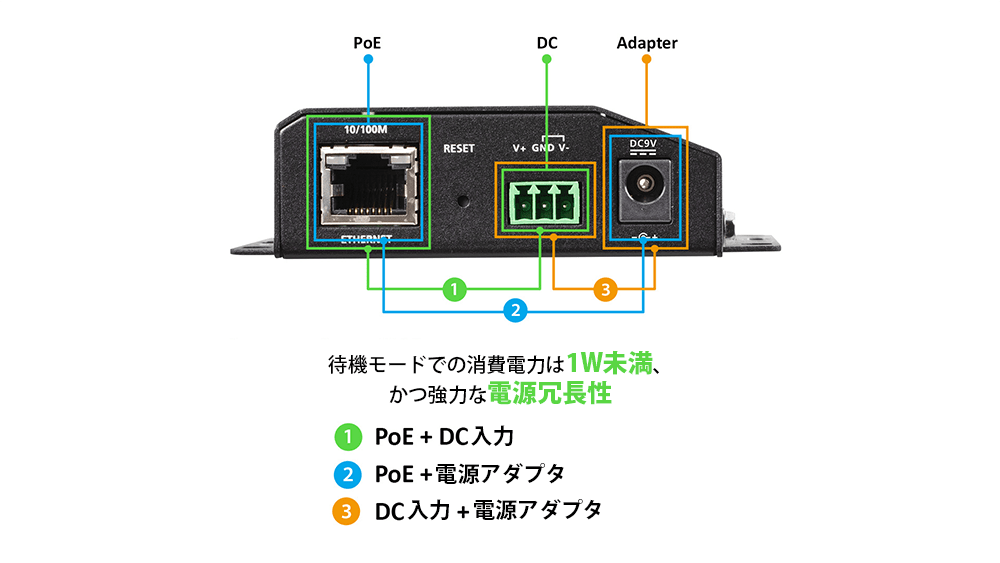 ネットワークの稼働時間を確保することは、ネットワークセキュリティの強化と同様に重要です。予期せぬネットワーク障害やダウンタイムのリスクを軽減するために、セキュアデバイスサーバーは強力な電源冗長性を備え、さまざまな産業環境にシームレスに統合できます。さらに、各ユニットは待機モードでの消費電力が1W未満と非常に低く、コスト効率も優れています。