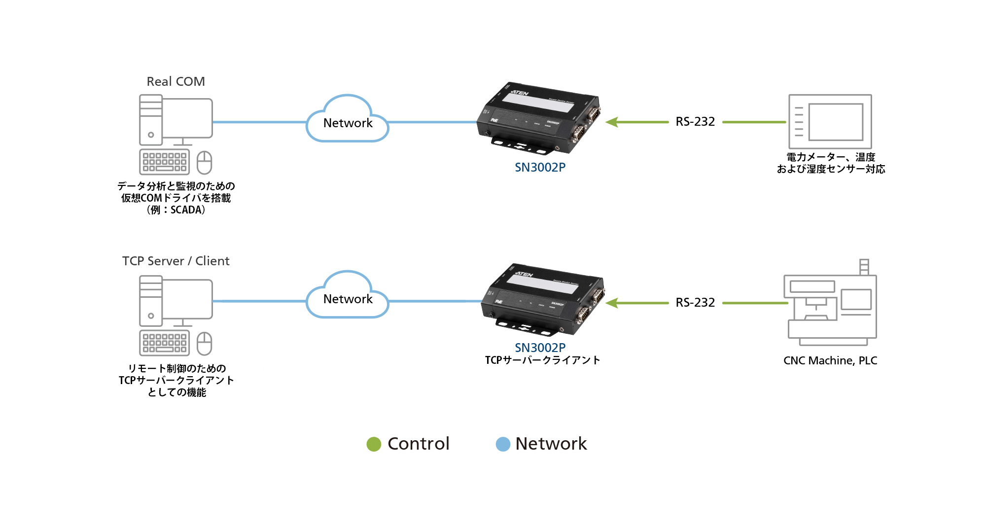 この移行でサイバーセキュリティが重要な役割を果たします。 セキュアデバイスサーバーは、旧式のシリアルデバイスと最新のイーサネットネットワークをつなぐゲートウェイとして、産業制御の課題を解決します。データはシリアルとネットワーク間で双方向に変換され、リモートでもローカルでも同じネットワーク内であればシームレスに通信できます。これにより、異なる技術間でデータ交換、集中監視、リモートデバイス管理が可能になり、運用効率と意思決定が向上します。