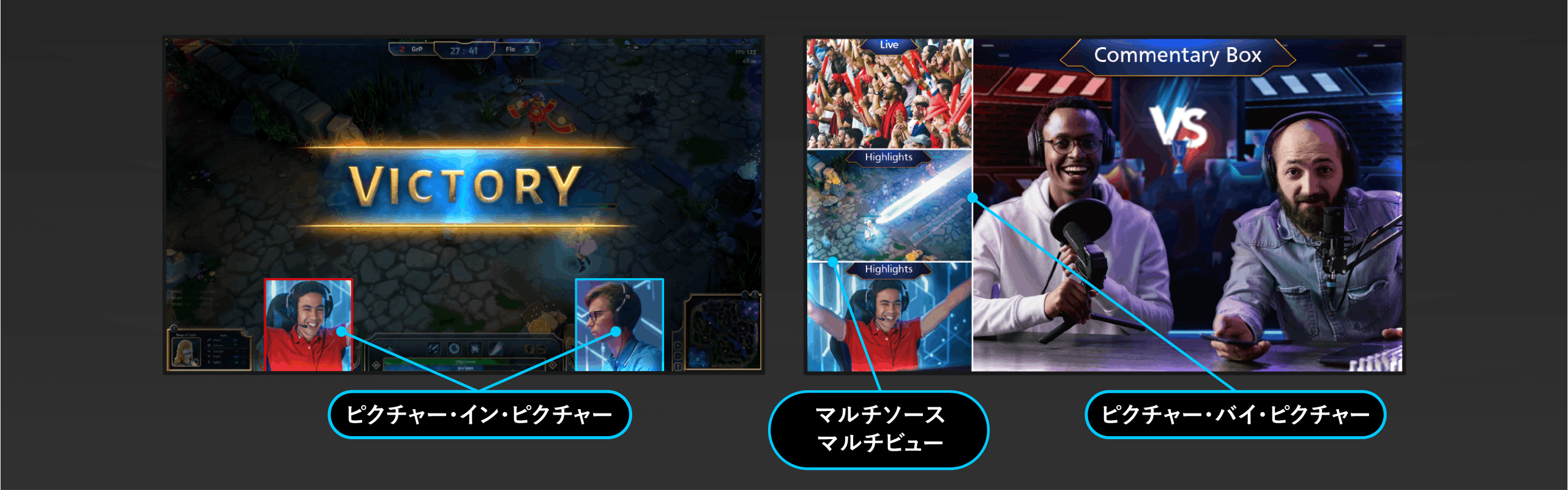- マルチ解像度対応 - 異なる解像度の映像を自由に組み合わせ可能