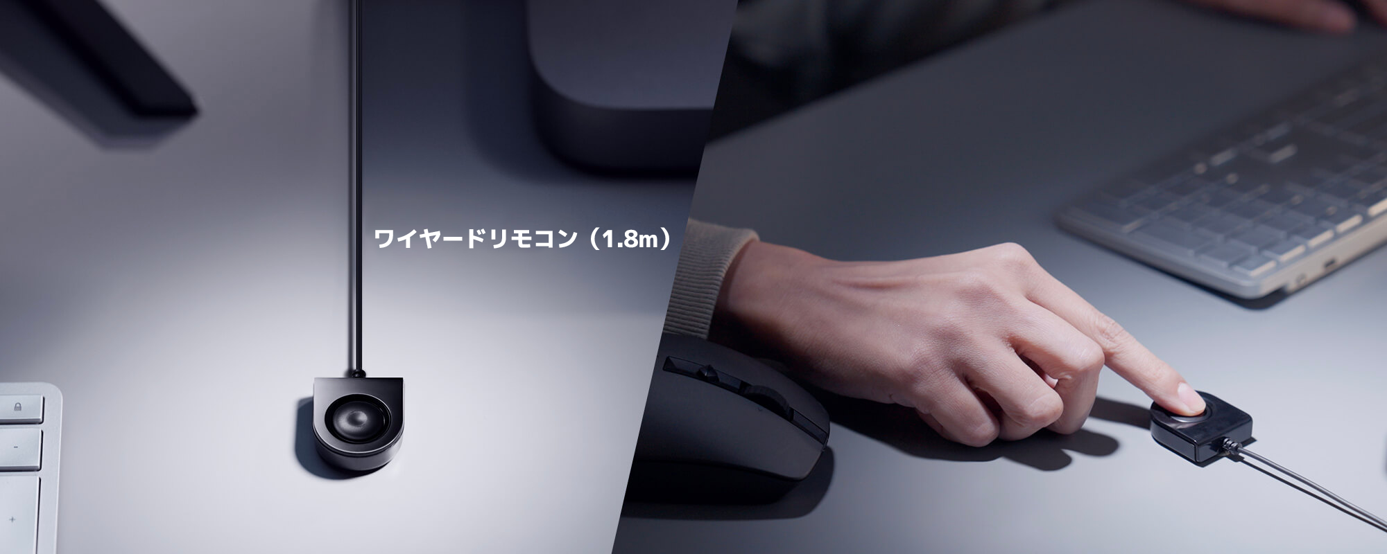 付属のワイヤードリモコン(1.8m)は、使いやすい場所に置くことで、