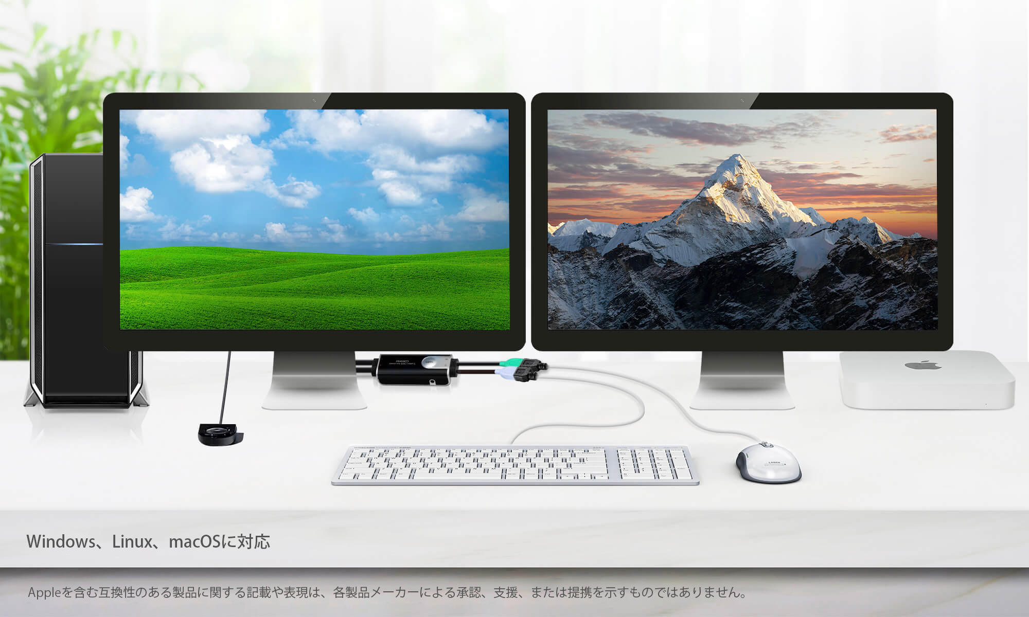CS62KMにキーボードとマウスを1台接続するだけで、Windows、macOS、Linuxシステム間を簡単に切り替えることができます。