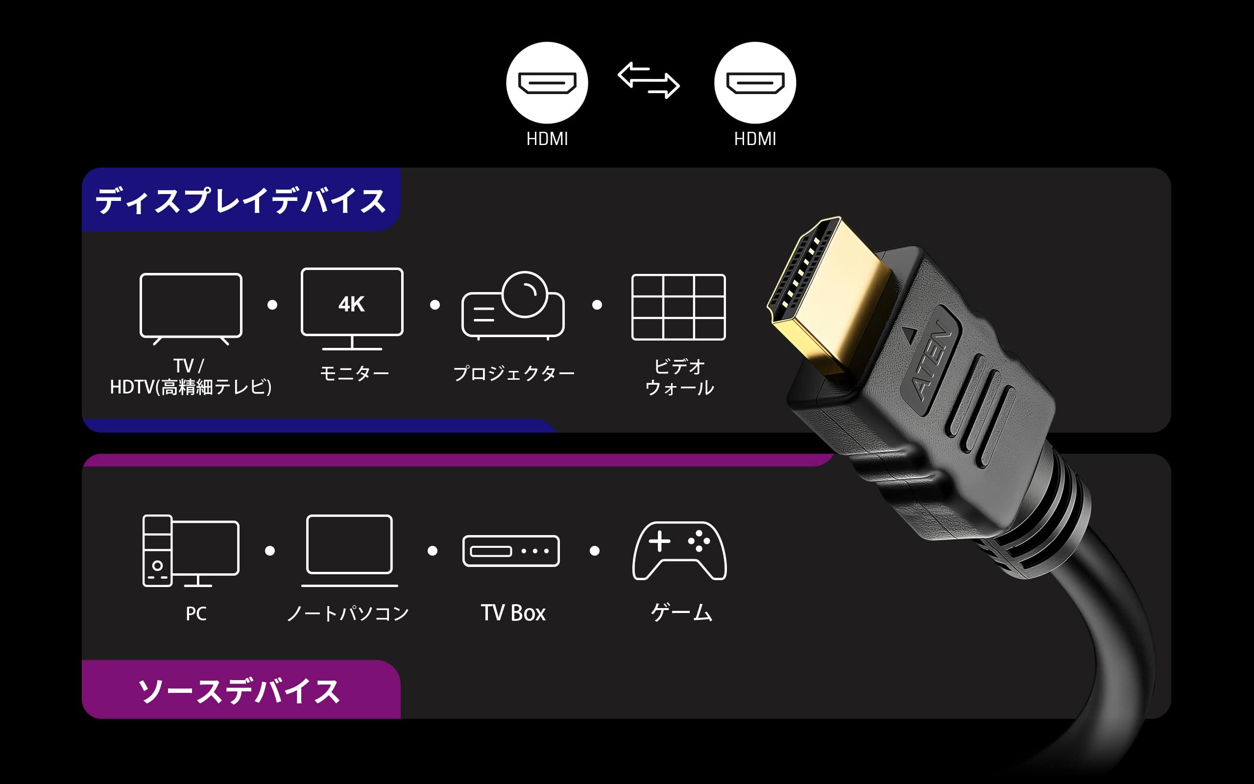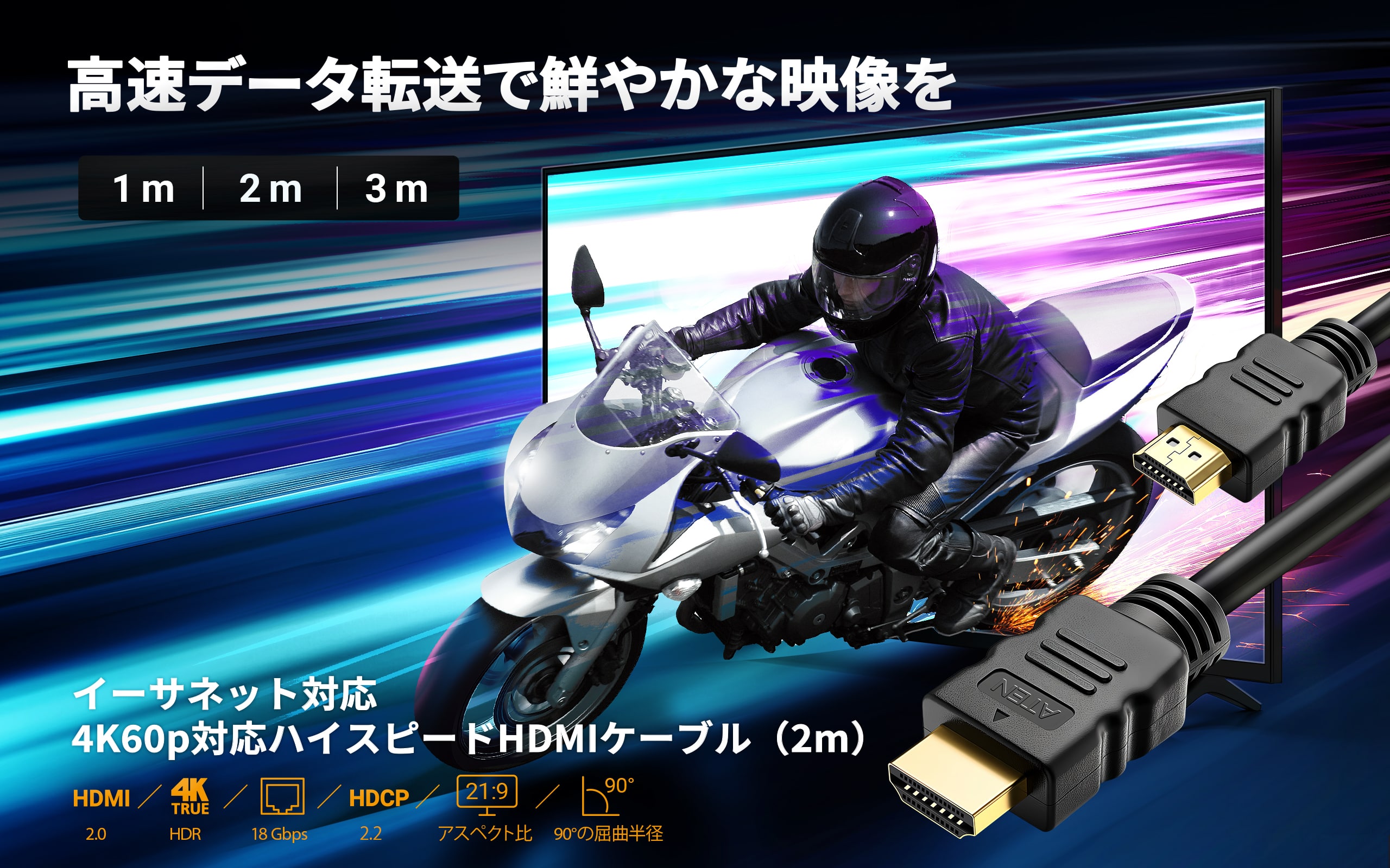 ATENのイーサネット対応ハイスピードHDMIケーブルは、オーディオとビデオの信号に非圧縮デジタルインターフェースを提供します。