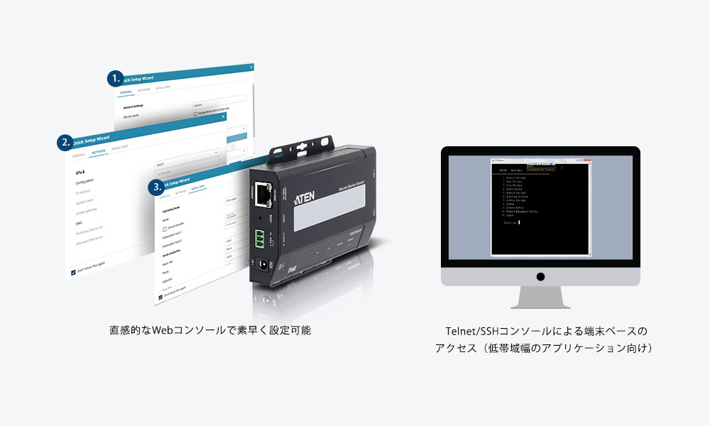 Webコンソール、Telnet/SSHコンソールで簡単セットアップ