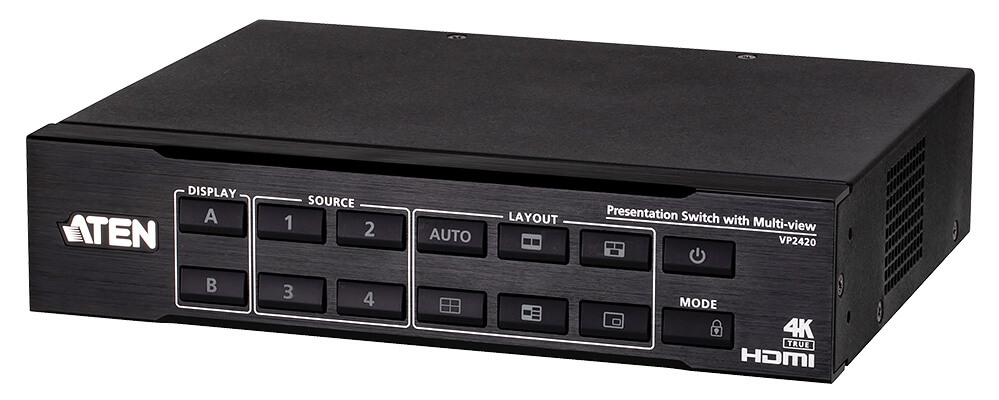 ATEN VP2420は、ハドルルーム、中規模の会議室、教室での利用に最適で、