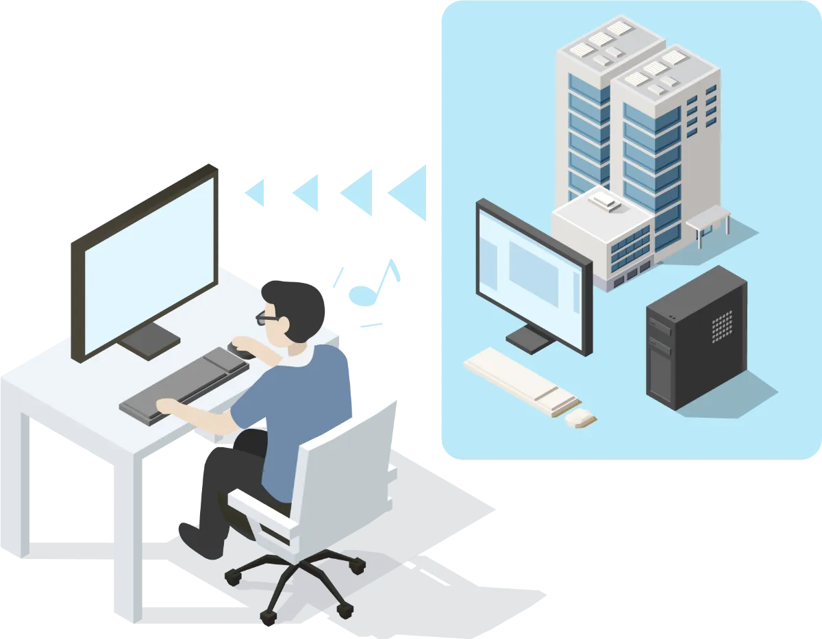 離れた場所にあるPC/サーバーを直接動かしているような感覚で操作できるため、低遅延が求められる業務でも安心して作業することができます。