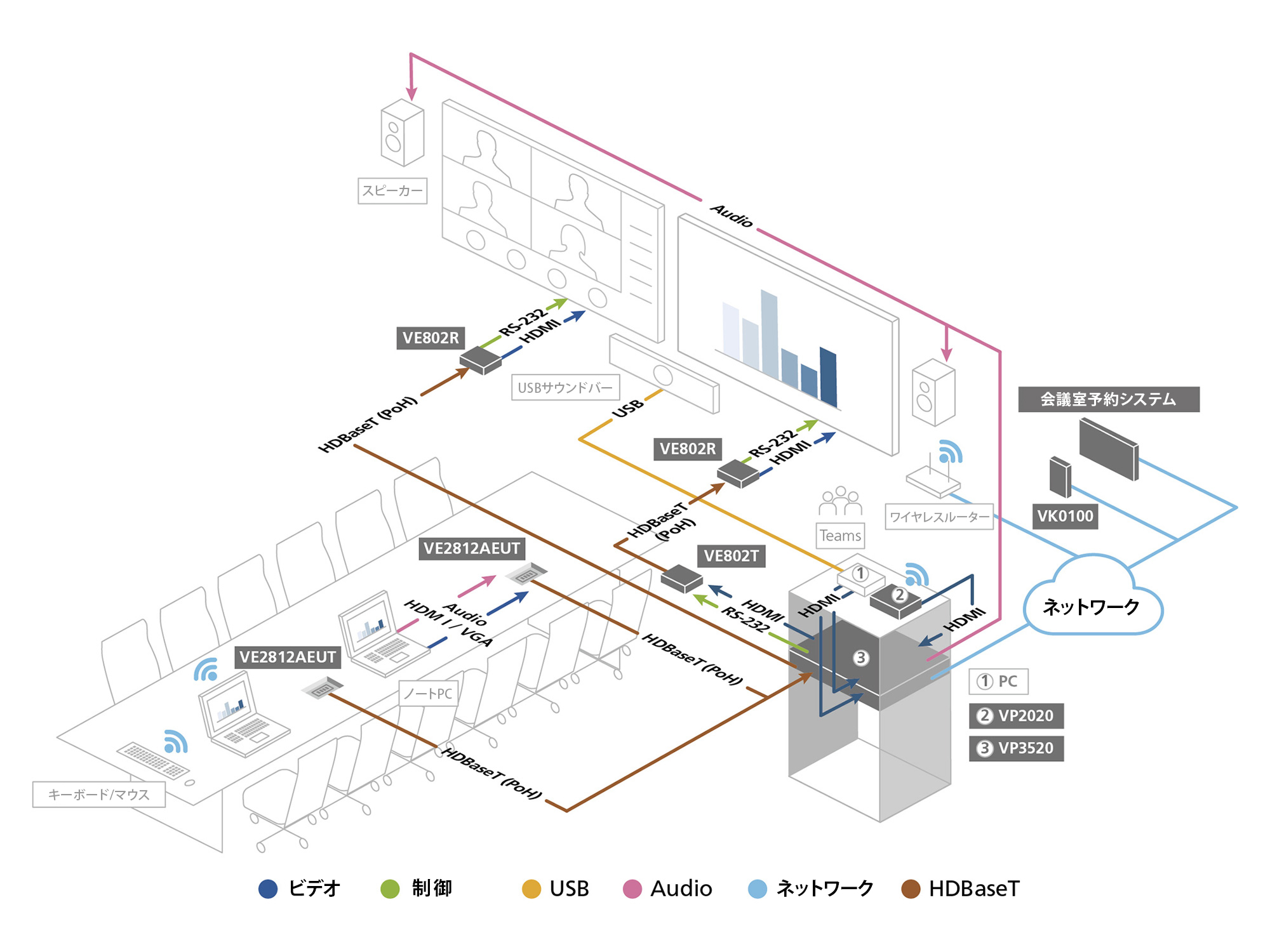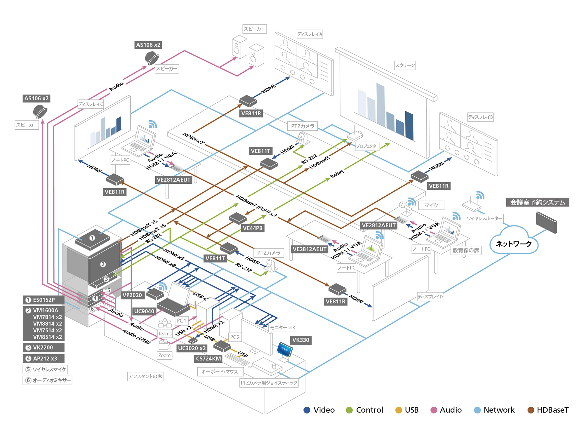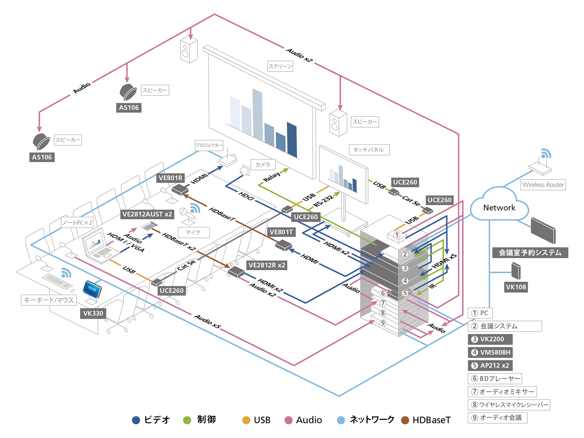 - ハイブリッド型役員室向けビデオマトリックススイッチャー、業務用AVコントロール&延長ソリューション