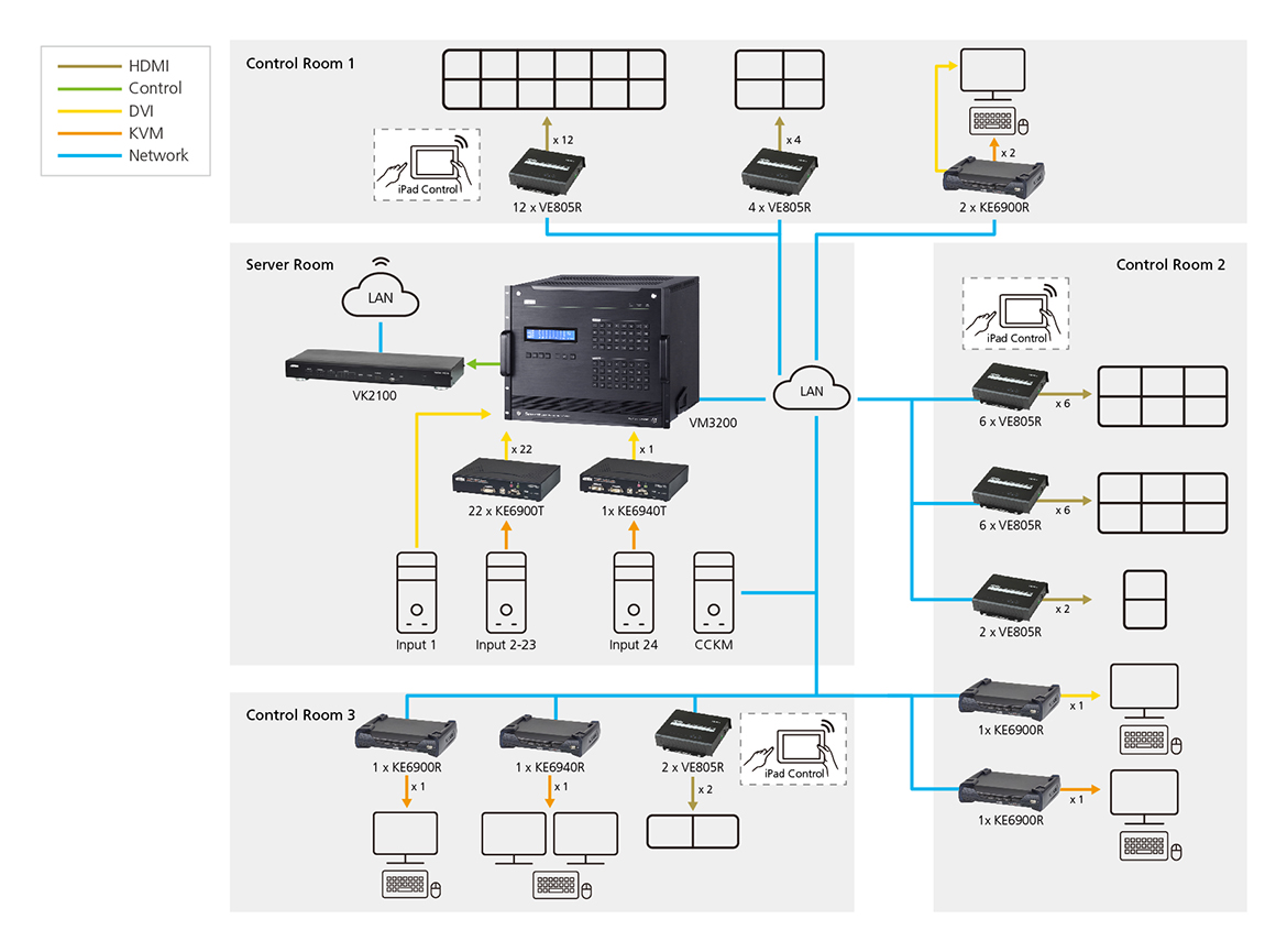 ビデオウォールプロセッサーの域を超えたATEN KVMマトリックスシステムは、オペレーターが日常業務で必要とするレベルを上回る柔軟性を提供してくれました。