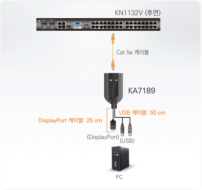 **호환되는 KVM 스위치에 대한 정보는 KVM 어댑터 케이블 호환성 목록 (https://ru.aten.com/global/en/products/kvmtool/kacablecompatibility/)을 참조하십시오.