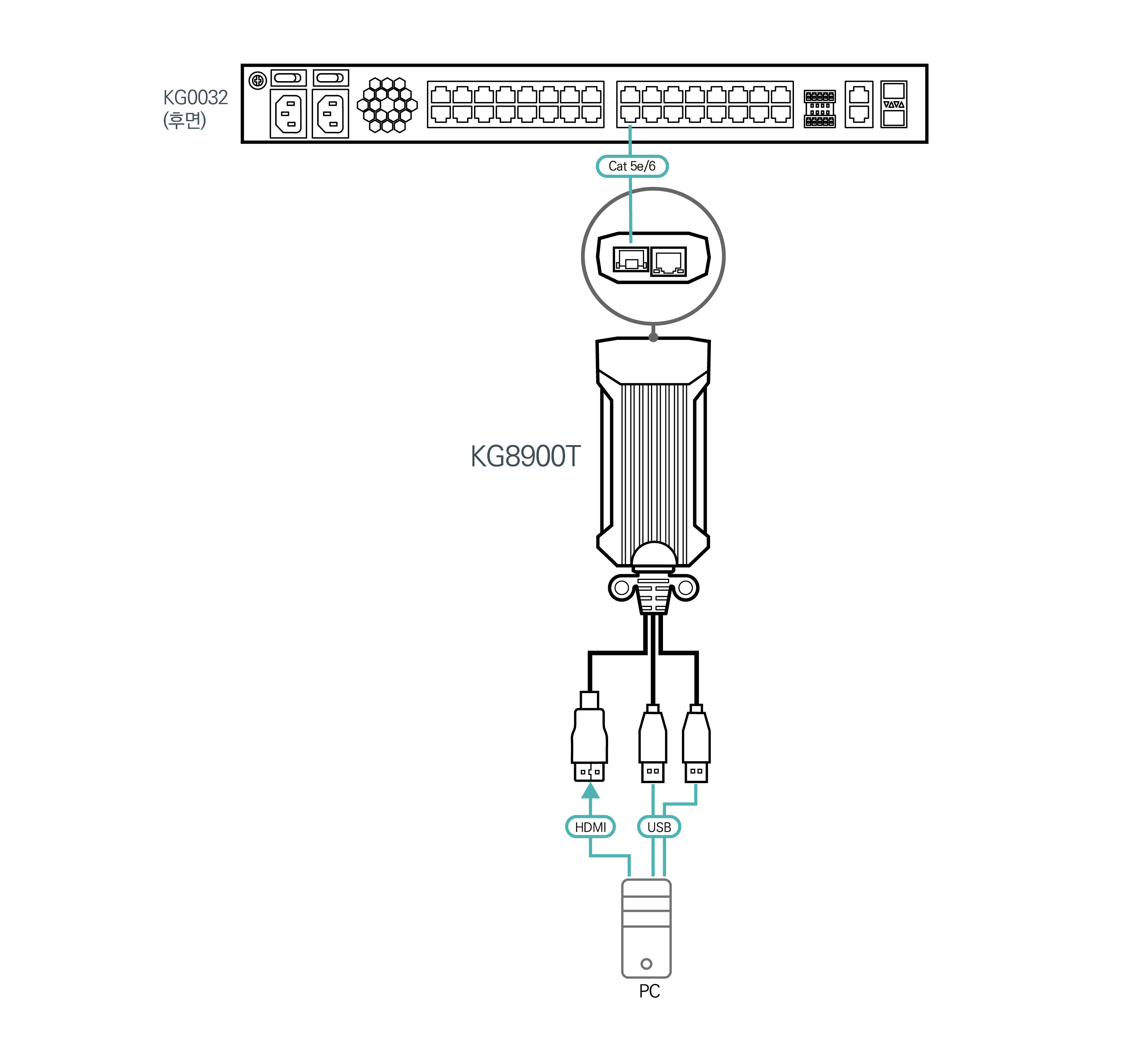 안내: ATEN KVM 디지털 프로세서는 KG0016 / KG0032와만 호환됩니다. KG0016/KG0032와 KVM 디지털 프로세서가 서로 직접 연결되어 있고 사이에 네트워크 스위치가 없는지 확인하십시오. ATEN 디지털 프로세서의 SP 포트는 추후 사용될 예정입니다.