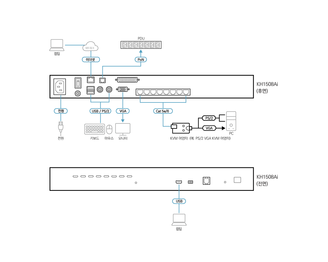 KH1508Ai는 편리한 랙 마운트를 위해 1U 사이즈의 8포트로 구성되어 있습니다. 로컬 및 리모트 관리자가 웹 기반의 브라우저를 통해 전체 기업 데이터 센터 디바이스를 액세스하고 모니터링 할 수 있습니다.