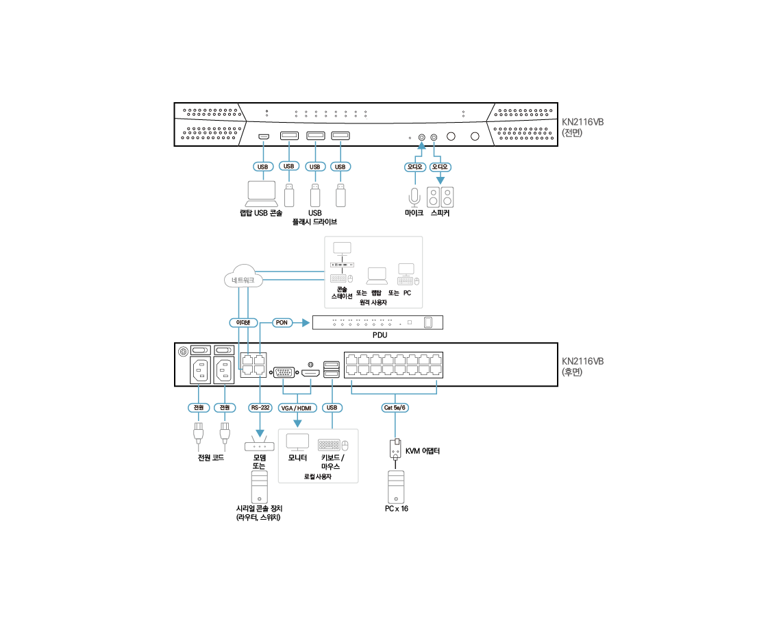 - 1x KN2116VB KVM over IP 스위치