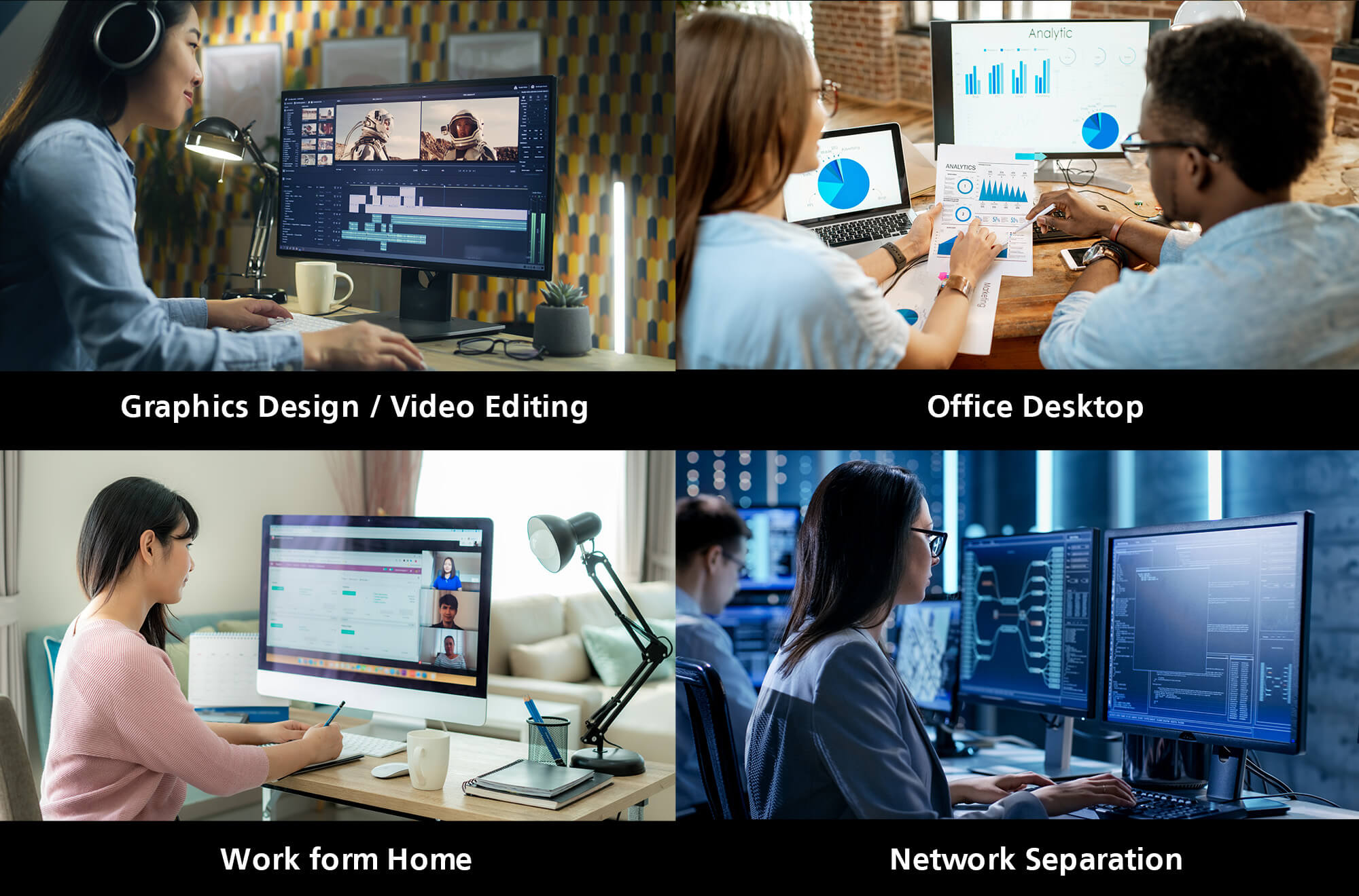 CS22HF로 작업 공간을 확보하고 생산성을 높이며 원활한 멀티 컴퓨터 작업 공간을 경험할 수 있습니다.
