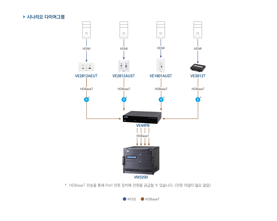 호환 가능한 ATEN PoH 전원 / PoE 전원 모델 : VE2812AT, VE2812AEUT, VE2812AUST, VE1812R, VE802R, VK108US, VK112EU, VK224, VK236, VK248, KE8952