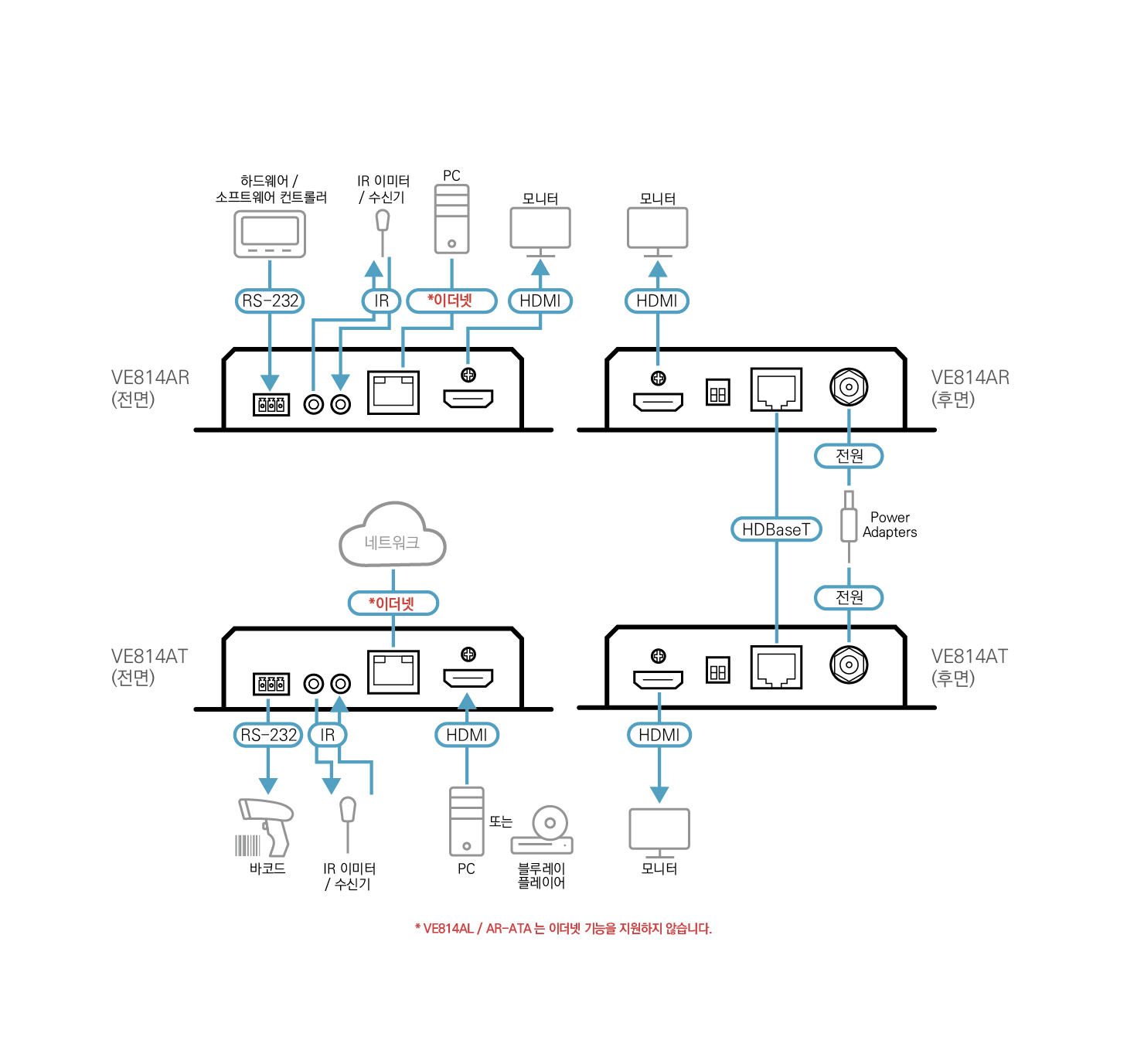 참고: 1. VE814AT/AR-ATA는 이더넷 기능을 지원하지 않습니다.