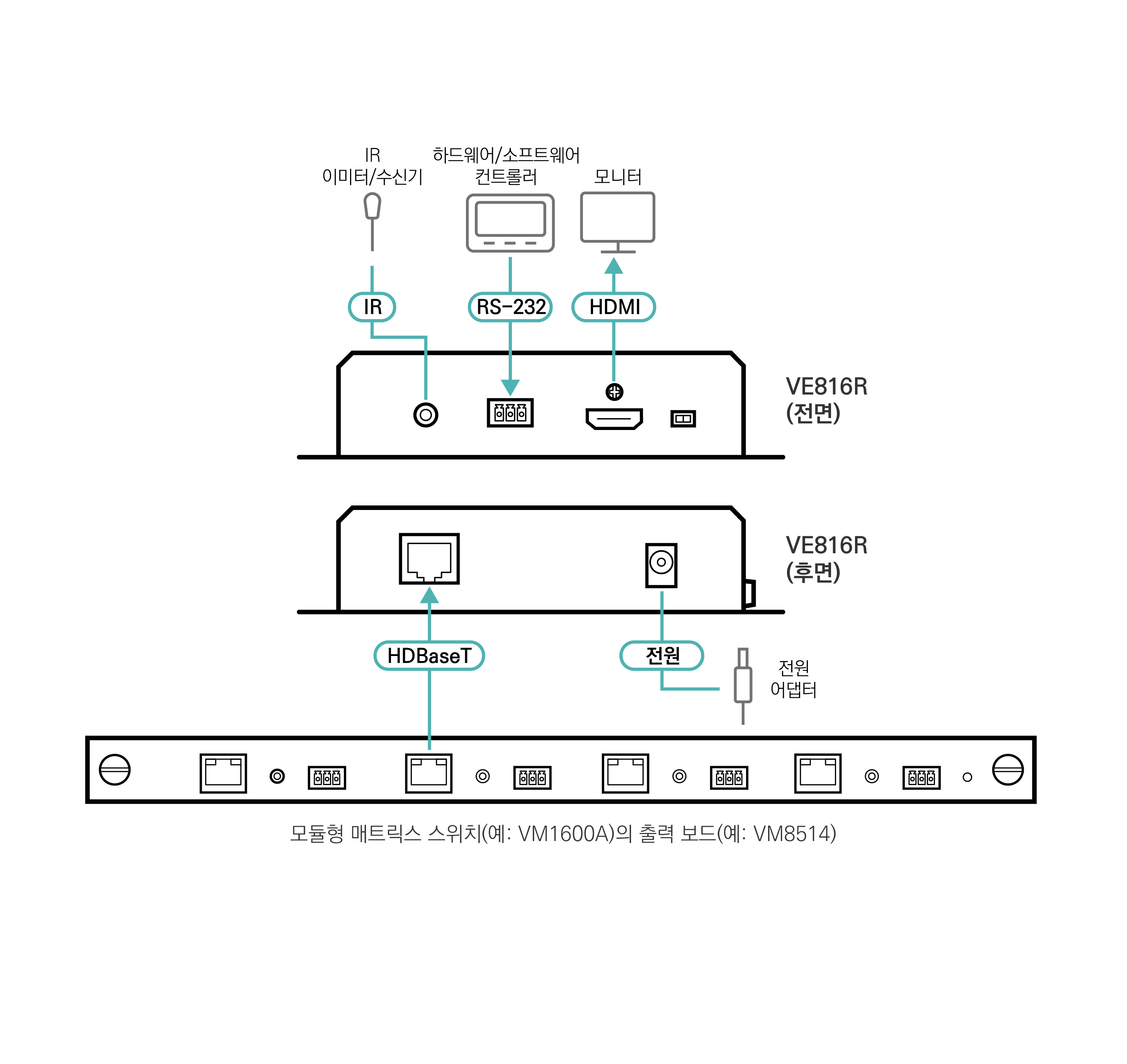 - 1x VE816R 4K HDMI HDBaseT 수신기 (스케일러 내장)