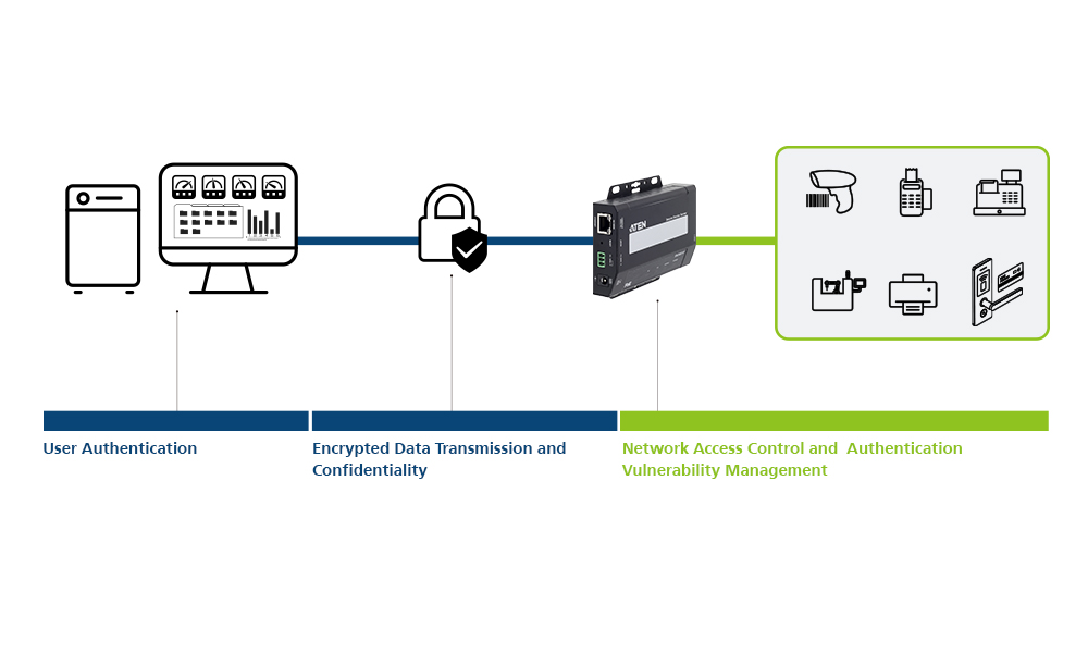 증가하는 사이버 공격은 시스템을 다운시키고 막대한 시간과 비용 손실을 초래할 가능성이 있습니다. 기업은 잠재적인 취약점 보완을 위해 정기적인 펌웨어 업그레이드와 다양한 암호화된 형식의 인증 및 접속 제어를 포함하는 안전한 데이터 전송을 보장하는 다층 방어 시스템이 필요합니다. SN3001P 보안 시리얼-이더넷 솔루션은 네트워크 접속 제어 및 사용자 인증, 데이터 무결성, 기밀성을 포함한 모든 단계의 보안 기능을 제공합니다. 또한 고급 보안 기능에 사용할 수 있는 작동 모드를 통해 필요한 모든 필드 데이터를 획득하고 수준 높은 보호를 제공할 수 있습니다.