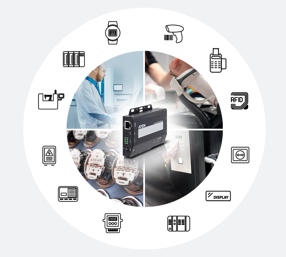 시리얼 장치의 즉각적인 네트워킹을 가능하게 하며 시리얼-이더넷 연결이 필요한 다양한 비지니스 애플리케이션 프로그램 및 산업 프로세스 자동화 환경에 배치할 수 있습니다. POS, 접속 제어, SCADA 시스템, 환경 모니터링, 센서 모니터링, 장치 관리, 원격 사이트 관리 등이 포함됩니다.