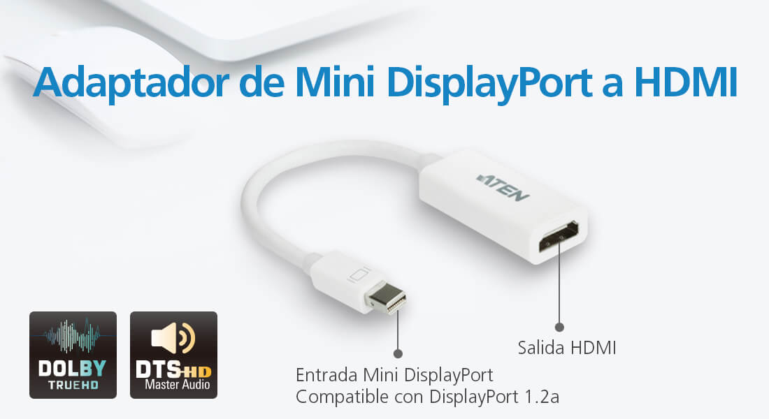 El adaptador Mini DisplayPort a HDMI le permite conectar un dispositivo con Mini DisplayPort a single display con conector HDMI.