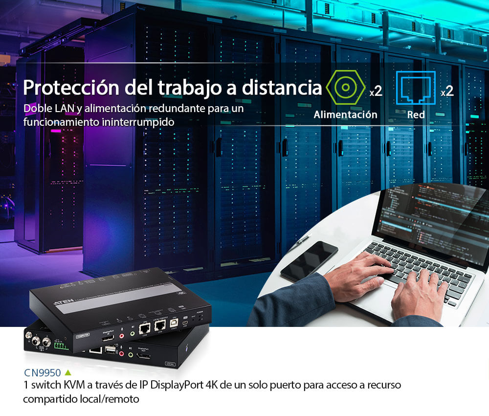 El CN9950 ofrece capacidad a través de IP para el acceso remoto a un PC/servidor dedicado a través de una conexión de red directa, a prueba de hackeos y a nivel del BIOS, y amplía la capacidad de modelos anteriores con una mayor excelencia visual, una resolución DCI 4K, utilizando un procesador gráfico FPGA. Permite un acceso remoto seguro a audio digital, vídeos y contenido multimedia virtual, lo que facilita el intercambio de archivos instantáneo y las actualizaciones del sistema a través de la red sin necesidad de instalar ni configurar ningún software adicional. Esto garantiza que el teletrabajo sea exactamente igual de eficaz que el trabajo local en términos tanto de calidad como de eficiencia.