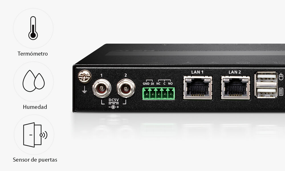 Para garantizar una conectividad fluida, el CN9950 está equipado con una funcionalidad de doble LAN y alimentación doble para mantener un funcionamiento fluido y eficiente de las salas de servidores. La función de detección del estado de alimentación envía automáticamente notificaciones de eventos cuando los dispositivos estén sin conexión (p. ej., fallo de alimentación) para la monitorización del estado del dispositivo. Además, el CN9950 incluye un terminal de relé / DI de 5 patillas (entrada digital) que permite el reinicio remoto del servidor local y recibe la entrada digital de un dispositivo de alarma/entrada conectado para la notificación de eventos críticos.