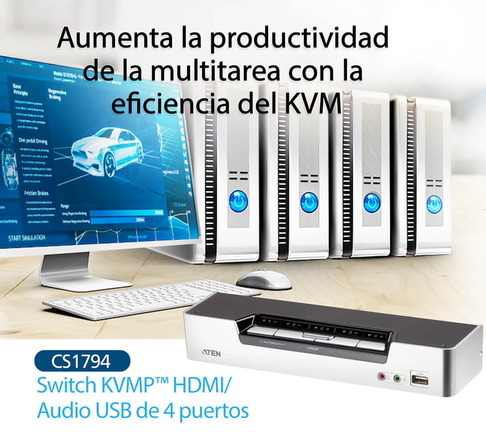 Ideal para aplicaciones multimedia en la oficina, el CS1794 ofrece lo último en tecnología KVM compacta y optimizada para el escritorio.