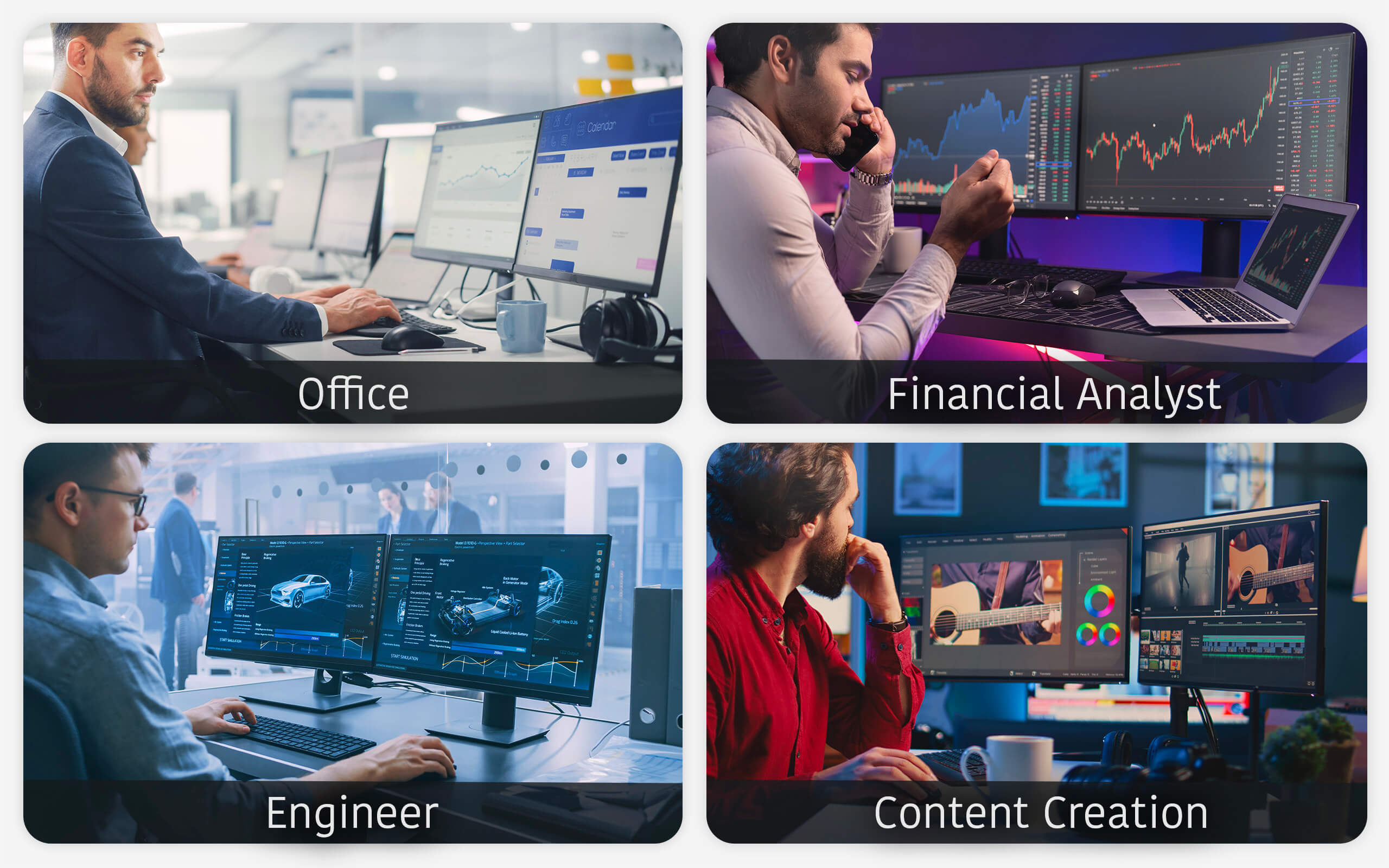 Transforme su escritorio en una potente estación de trabajo con cuatro monitores conectando en cadena dos conmutadores KVM CS1942DPA a través de sus puertos DCC. Esta consola KVM multisistema le permite controlar hasta cuatro ordenadores en cuatro monitores con un solo teclado y ratón. Es una solución extraordinariamente útil para optimizar cualquier flujo de trabajo híbrido en el que sea esencial la multitarea.