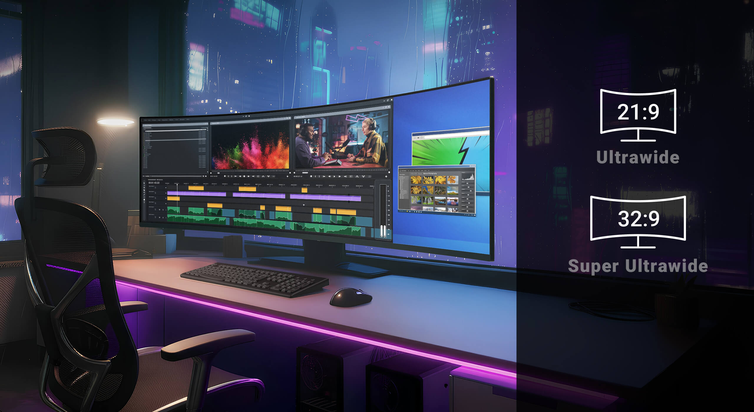 ● Relaciones de aspecto ultraanchas de 21:9 y 32:9 para una experiencia visual expansiva