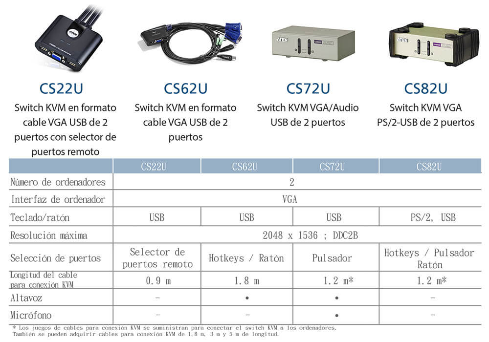 ATEN ofrece una solución KVM USB completa. El switch en formato cable CS62U conecta dos ordenadores USB con una consola USB para crear un sistema USB completo compatible con todos los sistemas operativos (como Windows, Mac, Linux y Sun).