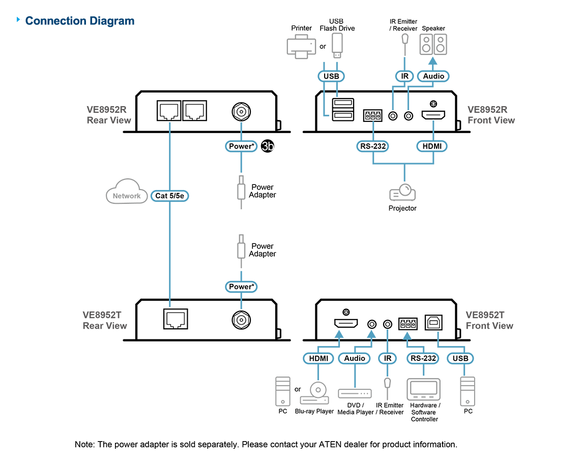 El transmisor de HDMI 4K a través de IP con PoE VE8952T de ATEN ofrece señales de audio y vídeo 4K casi sin pérdidas con baja latencia a larga distancia mediante una red Gigabit estándar. Se trata de una solución eficaz y fácil de usar que aborda directamente a los desafíos a los que se enfrentan los integradores de sistemas al implementar AV a través de IP.
