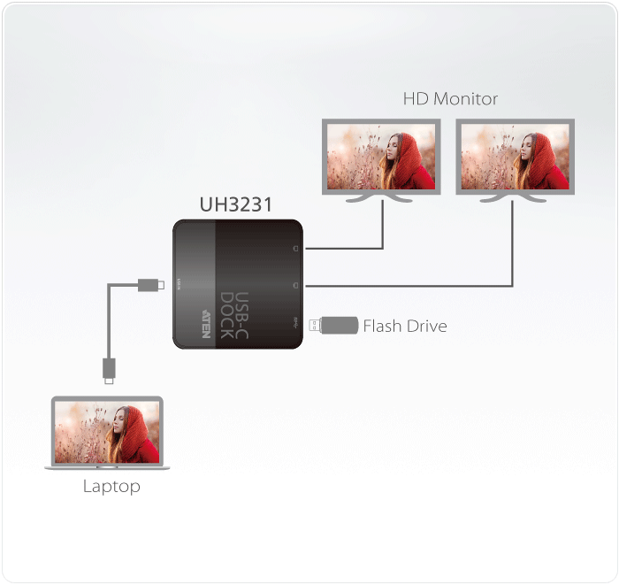 ATEN UH3231 es una Miniestación de conexión USB-C con dos DisplayPort que transforma su dispositivo USB-C en una estación de trabajo con dos monitores. Cumple las más recientes especificaciones USB 3.2 tipo C y es compatible con distintos conversores de vídeo que pueden convertir salidas HDMI, DVI o VGA de modo que puedan utilizarse en modo de pantalla dual. La UH3231 puede redirigir vídeo desde el dispositivo de origen hacia dos monitores DisplayPort, dividiendo la transmisión de vídeo para single display de vista doble a través de un único cable al tiempo que mantiene una resolución de gran calidad de hasta 1080p.