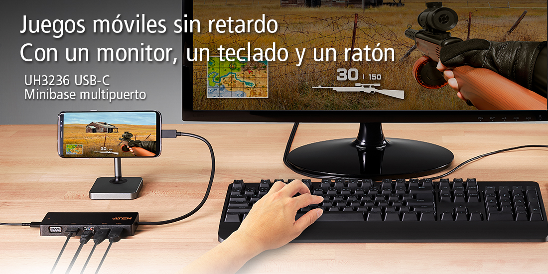 El UH3236 permite conectar un ordenador con USB-C a un máximo de 5 puertos periféricos, incluyendo USB 2.0 Tipo A, USB 3.2 Gen 1 Tipo A, LAN Gigabit, HDMI y VGA, a través de un único cable USB-C. El UH3236 envía la señal de vídeo desde un ordenador de origen a un monitor HDMI 4K (3840 x 2160 a 30 Hz) o VGA (1920 x 1200 a 60 Hz) a través de un único cable.