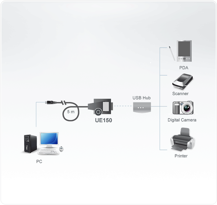 - Extiende la distancia hacia su dispositivo USB hasta 5 metros.