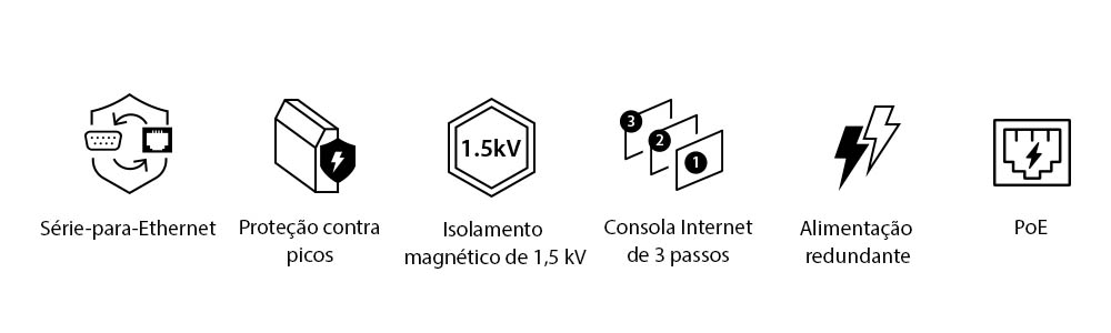 - Modos de operação protegida - Secure Real COM, Secure TCP Server / Client, Secure Serial Tunneling Server / Client, Console Management (SSH) e Console Management Direct (SSH)