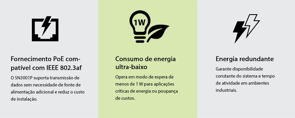 A série SN3000 possui diversos modos de operação úteis. Suporta TCP servidor / cliente seguro, tunelização de série servidor / cliente seguro, Real COM seguro e modos de gestão de consola para aplicações críticas de segurança, tais como telecomunicações, controlo de acesso e gestão de local remoto. Para além disso, os seus modelos em conformidade com a IEEE 802.3af podem ser alimentados por um dispositivo PoE PSE sem uma fonte de alimentação adicional.