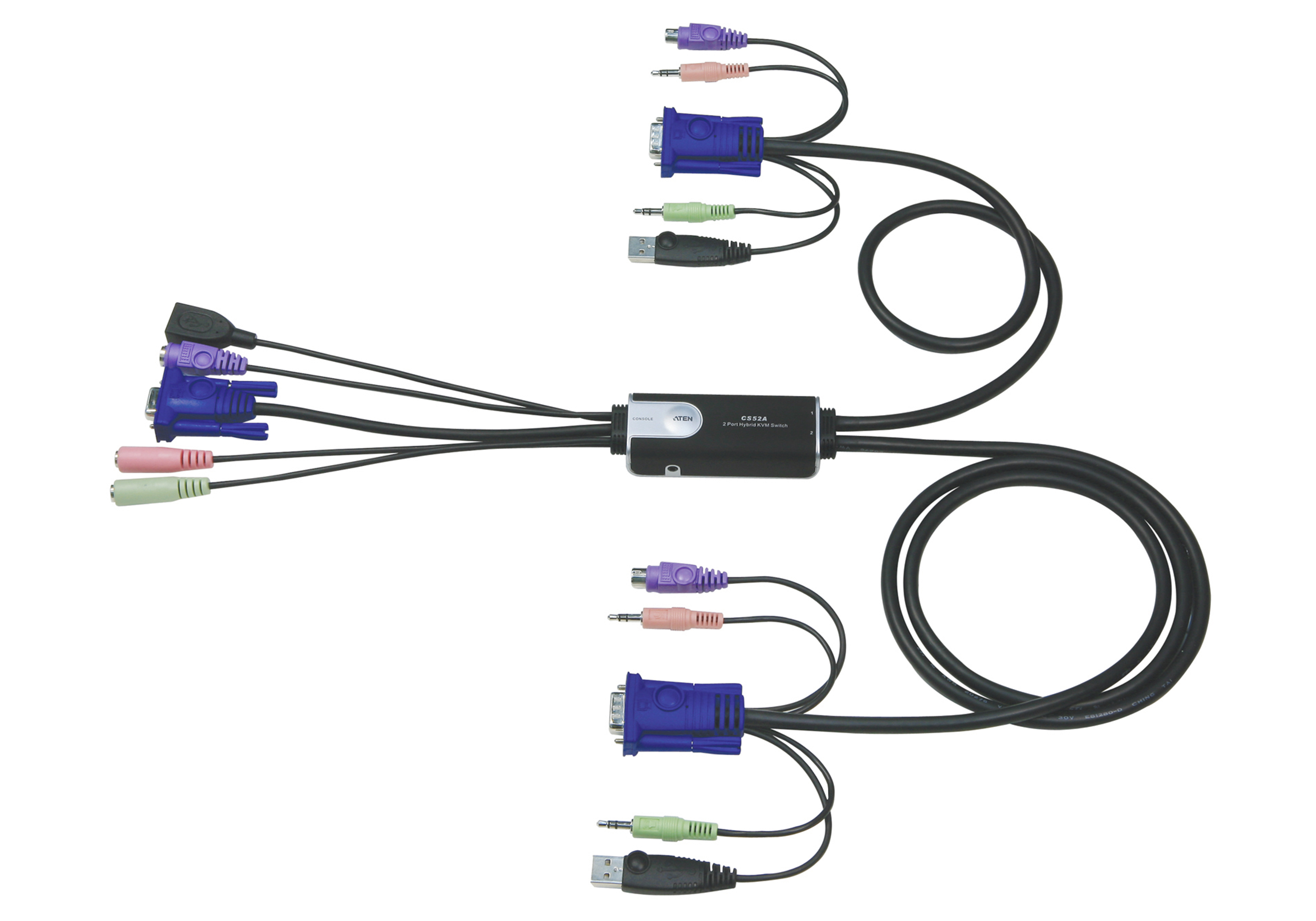 - Uma consola (monitor, teclado PS/2 e rato USB) controla dois computadores