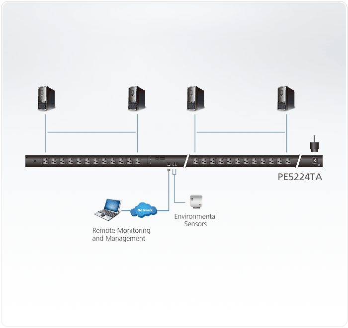 As ATEN NRGence™ PE5224TA eco PDU são PDUs inteligentes, economizadoras de espaço, contendo 24 tomadas CA disponíveis nas configurações IEC ou NEMA. As eco PDUs leves e economizadoras de espaço têm uma área menor de largura e entrada que as PDUs normais e de baixo perfil da ATEN. Esta série economizadora de espaço tem uma largura de 56 mm que cabe em calhas de servidor, permitindo mais espaço para arrefecimento e manutenção. O design mais compacto permite obter mais 8% de espaço na calha, para aumentar a circulação de ar e arrefecer o equipamento informático de forma mais eficiente. Significa também uma manutenção mais rápida, com acesso facilitado a equipamento que está normalmente instalado atrás da PDU.