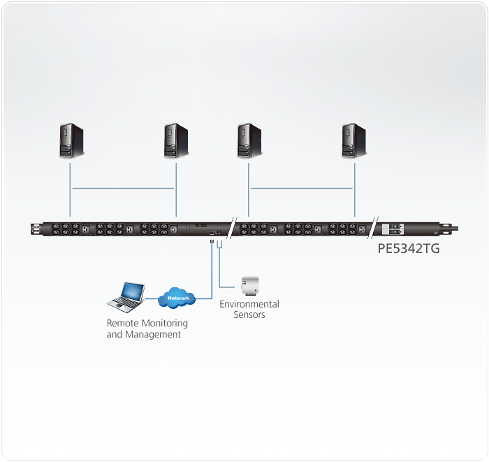 A eco PDU ATEN NRGence™ PE5342TG é uma PDU inteligente de formato fino que contém 42 tomadas IEC. A leve PDU com apenas 5,6 cm de largura encaixa perfeitamente em bastidores de servidores, disponibilizando mais espaço no bastidor para aumentar a circulação de ar e eficiência de refrigeração. Isso significa também manutenção mais rápida graças a um acesso mais fácil ao equipamento instalado atrás da PDU.