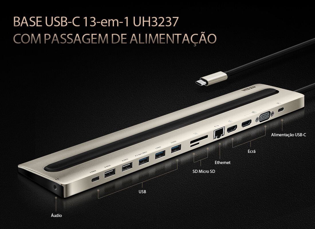 - Expande até 13 dispositivos instantanemente, através de um só cabo USB-C