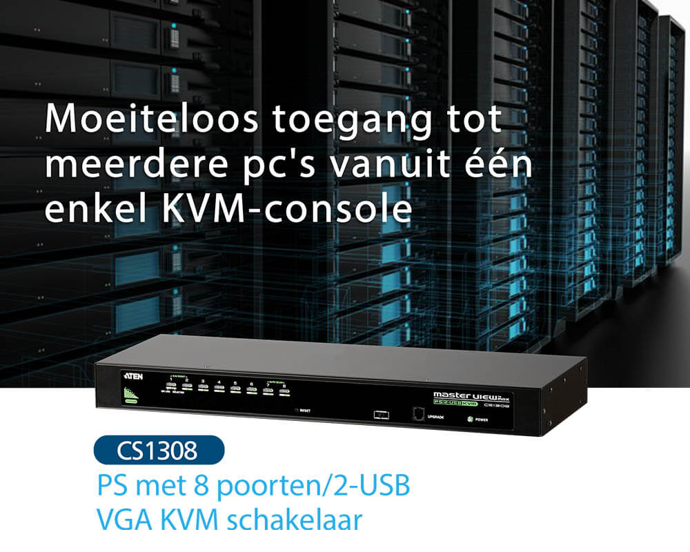 De CS1308 versnelt de toegang tot 8 pc's via één set van een toetsenbord, muis en monitor, waardoor It-personeel productief meerdere computers tegelijkertijd kan beheren via eenvoudig schakelen. De CS1308 is tevens uitbreidbaar en zorgt ervoor dat nog 8 extra schakelaars kunnen worden uitgerold om centraal beheer van tot wel 64 pc's via één KVM-console mogelijk te maken.