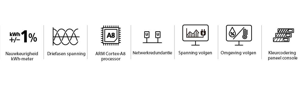 | Meten | Spanning uitgangsniveau, Voltage, PF en KWh monitoring | Spanning uitgangsniveau, Voltage, PF en KWh monitoring | Spanning uitgangsniveau, Voltage, PF en KWh monitoring |