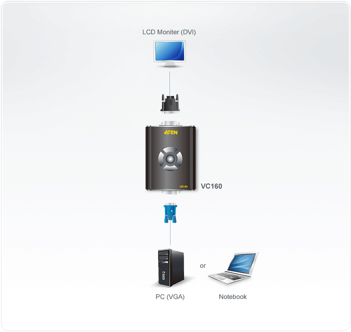 - 1 wejście VGA, 1 wyjście DVI-D