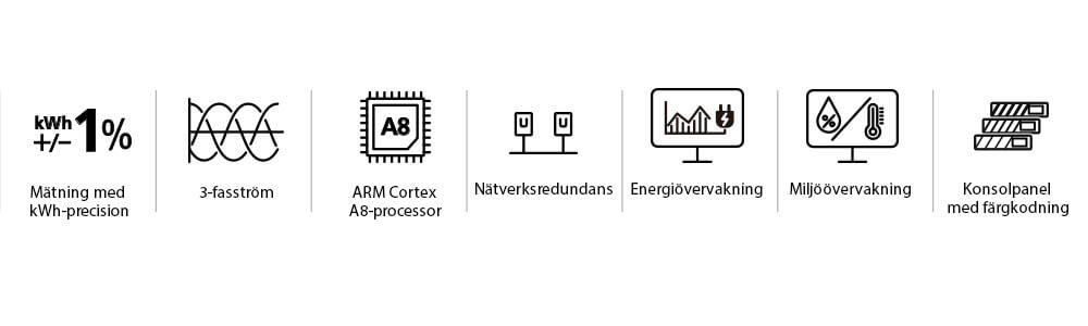 | Mätning | Övervakning av ström, spänning, PF och KWh på banknivå | Övervakning av ström, spänning, PF och KWh på banknivå | Övervakning av ström, spänning, PF och KWh på banknivå |