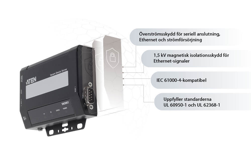 En lättanvänd, säker och tillförlitlig lösning som gör det lättare att snabbt ansluta ett stort antal olika seriella enheter till ett IP-baserat LAN. ATEN SN3001-serien med säkra enhetsservrar tillhandahåller enkel och snabb seriell-till-Ethernet-anslutning, så att användare kan fjärransluta till seriella RS-232-enheter från en dator, från valfri plats. Med olika tillförlitliga funktioner är SN3001 perfekt för kommersiella och industriella processkontrolltillämpningar.
