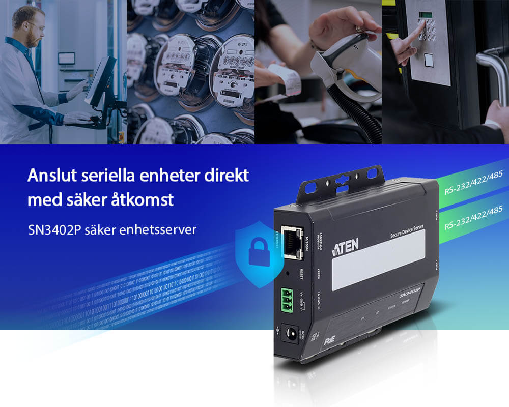 En lättanvänd, säker och tillförlitlig lösning som gör det lättare att snabbt ansluta ett stort antal olika seriella enheter till ett IP-baserat LAN. ATEN SN3402P säker enhetsserver tillhandahåller enkel, snabb seriell-till-Ethernet-anslutning, så att användare kan fjärransluta till seriella RS-232/422/485-enheter från en dator, från valfri plats. Med olika tillförlitliga funktioner är SN3402P perfekt för kommersiell och industriell processkontroll.