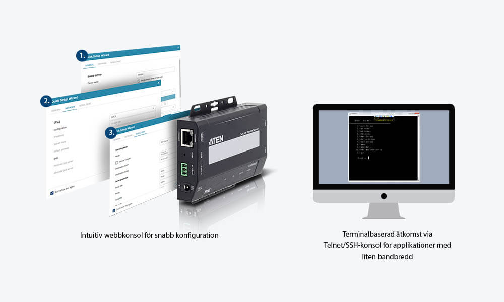 SN3402P erbjuder en webbkonsol med snabb installation i 3-steg. Webbläsaråtkomst för enheten stöds via intuitiva funktioner med flerspråksstöd, vilket möjliggör snabb installation och enhetskontroll i endast tre konfigurationssteg för att aktivera systemet. Det här ger en enkel och snabb installation – användaren kan slutföra den på runt en minut. För bandbreddskänsliga applikationer finns även en Telnet/SSH-konsol tillgänglig som en lösning med liten bandbredd.